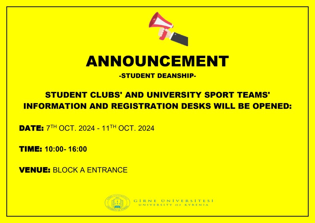 Student Clubs’ and University Sport Teams’ Information and Registration Desks Will be Opened